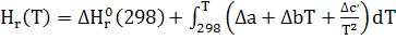 Расчет теплового эффекта реакции в изобарном процессе при заданной температуре(DH):