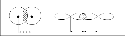 В обоих случаях область перекрывания лежит на линии “х”, проходящей через центры атомов.