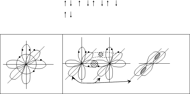 При взаимодействии друг с другом двух атомов кислорода происходит перекрывание попарно двух рх–орбиталей и двух рy–орбиталей. Причем, область перекрывания рх–орбиталей находится на линии, связывающей центры двух атомов. При этом образуется spx-px –связь. Область перекрывания двух рy–орбиталей лежит в плоскости (x–y), т.е. в плоскости перпендикулярной линии связывающей центры кислородов. Образуется ppy-py –связь. Это показано на рис.4.10.