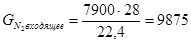 Так, как азот присутствует в исходном газе в качестве балласта, то его количество в ходе химической реакции не меняется.