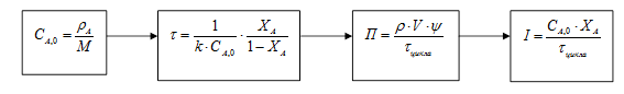 Рассчитать объём реактора идеального вытеснения (РИВ) при проведении в нём реакции: А R+SО.