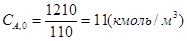 Рассчитать максимальный секундный расход (мольный расход) вещества А при соблюдении следующих условий:
