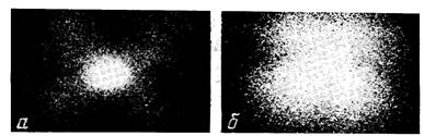 Рис. 1. дифрактограммы малоуглового рассеяния поляризованного света утоненной (а) и утолщенной (б) частями пленки