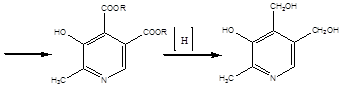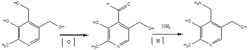 Основным лекарственным веществом витаминов группы В6 является пиридоксина гидрохлорид. Сравнительно несложная химическая структура позволила осуществить синтез пиридоксина из алифатических соединений. Известно много различных вариантов синтеза. Наиболее эффективный из них основан на циклизации N-формил-D,L-аланина, с последующей его циклоконденсации с эфиром 1,4-бутендионовой кислоты. Полученный бицикл в кислой среде расщепляется в производное пиридина, которое гидрируют до пиридоксина: