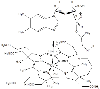 Структура цианкобаламина была установлена в 1955 г, а затем подтверждена синтезом, осуществленным в 1972 г В.Рудвордом в США и Н. Эшенмозером в Швейцарии. Молекула цианкобаламина состоит из двух связанных между собой частей: кобальтового комплекса нуклеотида бензимидазола и макроциклической корриновой системы.