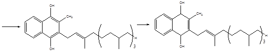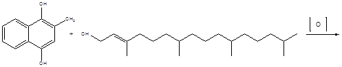 Синтез витамина К основан на алкилировании 2-метил-1,4-дигидроксинафталина фитолом в присутствии катализатора (алюмосиликатов) с последующим окислением до 2-метил-1,4-диоксонафталина: