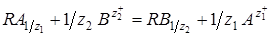 где R — матрица ионита с присоединенным к ней фиксированным ионом, А+ и В+ — подвижные ионы[3].