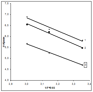 Зависимость lnКравн от 1/Т*10-3 представлена на рис.6.