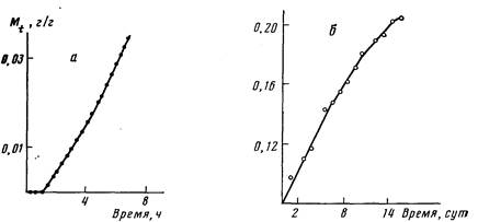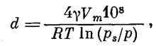 где d — диаметр пор в A; f — поверхностное натяжение CC14, равное 26,8 эрг/см2; Vm — мольный объем СС14, равный 97,1 см3/моль. Так как резкое возрастание сорбции наблюдается в интервале относительных дав лений пара СС14 от 0,6 до 0,65 (рис. 1), то расчет дает значения диаметра пор от -80 до -100 А.