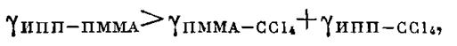 т. е. замена межфазной границы ИПП — ПММА на границу каждого из компонентов с СС14 должна приводить к выигрышу в межфазной поверхностной энергии.