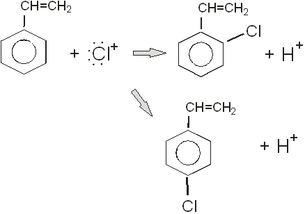 В данной реакции мы получим не только о-хлорстирол, но и п-хлорстирол, который изомерен первому. Выход данных продуктов реакции будет равен между собой и составит 50%.