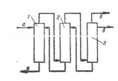 Ректификацию проводят на трех последовательно расположенных колоннах с числом тарелок в каждой 130 – 150. Капитальные затраты по сравнению с работой на одной колонне аналогичной суммарной эффективности безусловно выше, но эксплуатационные расходы ниже.