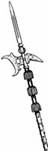 Алебарда (франц. hallebapde) - колющее и рубящее древковое холодное оружие в виде длинного копья с посаженным топором. Была на вооружении пехоты ряда европейских стран в 14-16 вв., как парадное оружие сохранилось до 18 в.