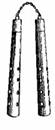 Нунчаку (Нунтяку) - традиционное ударно-раздробляющее холодное оружие в странах Юго-Восточной Азии, Китае и Японии. Состоит из двух (реже 3,4 и даже 5) деревянных ударных элемента (дубинка), соединенных между собой подвесом. Длина ударных элементов 25-35 см, длина подвеса у китайского варианта 20-30 см, у японского - по ширине кисти руки владельца - 7-11 см. В ряде зарубежных стран Н. выпускаются промышленностью из современных материалов (металла, пластмассы и т.д.). Масса ударных элементов и боевых нунчак не менее 100 г. каждого, у спортивных нунчак, предназначенных для обучения и тренировок, меньше 100 г. (обычно легкие, из бамбука). Высокоэффективное применение нунчаку требуют специального обучения и длительной тренировки, что позволяет осуществлять нападение и защиту не только путем нанесения ударов, но и удушения противника или ущемления его конечностей.