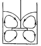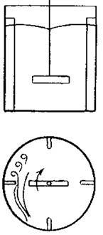 Рис. 1. Циркуляция жидкости при перемешивании лопастными мешалками