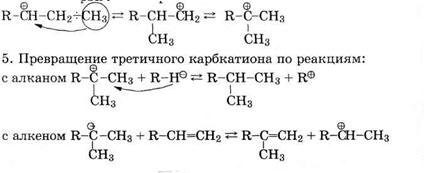 2) изометрия в стабильный третичный карбкатион через рестабильный первичный карбкатион: