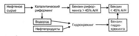 —облагораживание бензина — получение бензина с высоким содержанием ароматических углеводородов и высоким ОЧ.