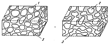 1- дискретные (закрытые) ячейки; 2 — взаимопроникающие (открытые) ячейки;