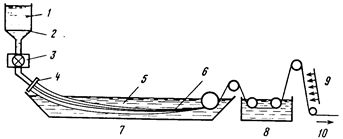 Рис.18. Схематическое изображение процесса мокрого прядения