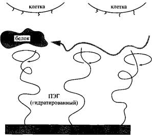 Рис. 7. Отторжение белков поверхностями, модифицированными ПЭГ
