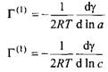Рассмотрим соотношение между адсорбцией и поверхностным натяжением в рамках теории регулярных растворов. Для обсуждения адсорбции растворенного вещества на поверхности жидкость-воздух необходимо определить, что такое поверхность. Первое определение поверхности восходит к работам Гиббса. Он определил положение поверхности следующим условием: концентрация растворителя равна половине суммы концентраций в объеме растворителя и в равновесном с ним паре. Адсорбция поверхностно-активного вещества обычно обозначается как Г, где индекс указывает, что поверхность и, следовательно, адсорбция определяются растворителем.