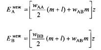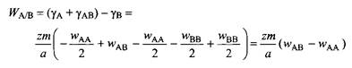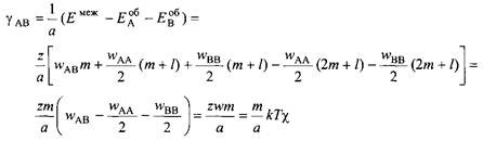 Энергия, приходящаяся на молекулу типа А или В на межфазной границе AB, выражается соотношениями