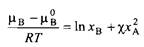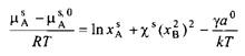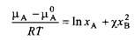 На основании теории регулярных растворов можно получить соотношение между поверхностным натяжением и адсорбцией второго компонента. Теорию регулярных растворов удобно использовать из-за ее простоты. Конечно, для анализа растворов полимеров можно воспользоваться и теорией Флори-Хаггинса, но в последующих преобразованиях некоторая доля простоты будет утеряна. В теории регулярных растворов принимается, что а) молекулы одинаковы по размеру, б) взаимодействие реализуется только между ближайшими соселями, в) при смешении компонентов не происходит изменения объема. Изменение химического потенциала при смешении двух жидкостей по сравнению с химическими потенциалами каждой индивидуальной жидкости м а ицв выражается как