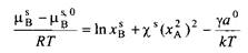 где г — поверхностное натяжение раствора. В качестве стандартного состояния принимается состояние поверхностной фазы индивидуальных компонентов. Постоянная а — это площадь поперечного сечения молекулы; ее можно оценить из соотношения