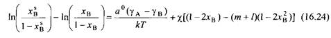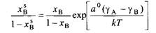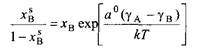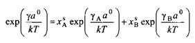 Алгебраическая форма уравнений и идентична уравнениям и соответственно для смешанных мицелл. Величина ехр соответствует KKM. Этот результат не удивителен, поскольку поверхностное натяжение раствора отражает его состав так же, как KKM смеси ПАВ отражает состав смешанной мицеллы. Уравнения указывают на то, что компонент с более низким поверхностным натяжением преимущественно адсорбируется на поверхности. По этой причине поверхностное натяжение раствора всегда ниже среднеарифметического поверхностного натяжения индивидуальных компонентов. Комбинируя уравнения и и исключая поверхностное натяжение раствора, получим уравнение изотермы адсорбции, которое устанавливает связь между составом поверхности и составом раствора: