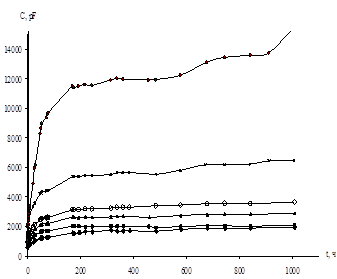 Рисунок 5.1 – Изменение значений электрической емкости системы окрашенный металл – электролит.