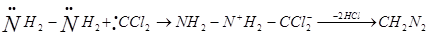 Примерами реакций, идущих с участием дихлоркарбена, могут служить реакции получения диазометана:
