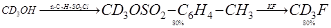 Хотя фторпроизводные метана и можно получить при фторировании метана элементарным фтором, однако на практике каждое из них получают другими способами. Фтористый метил был получен реакцией йодистого метила с фтористой ртутью и йодом или метилового эфира п-толуолсульфоновой кислоты с фтористым калием. Этим же путем из тридейтерометил-п-толуолсульфоната был получен фтористый тридейтерометил: