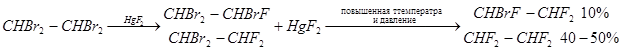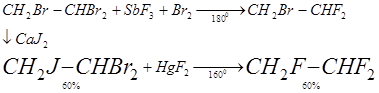 Смешанные фторгалогенопроизводные этана получают фторированием соответствующих хлоридов или бромидов, а также присоединением фтористого водорода к хлорированным этиленам: