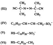 Рис. 5. Структуры различных полимеризующихся ПАВ: I, II — ПАВ, которые выполняют роль инициаторов полимеризации; IV, V — ПАВ, которые способны осуществлять функцию передачи цепи. Для сравнения приведены также структуры обычного инициатора полимеризации и вещества, обладающего функцией переноса цепи