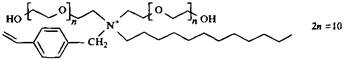 Латексы часто получают с использованием комбинаций неионных и анионных ПАВ. Катионные ПАВ также могут быть использованы при синтезе латексов, несмотря на то, что практическое применение положительно заряженных латексов ограничено. На рис. 23 приведены структуры трех четвертичных аммониевых ПАВ, содержащих в качестве реакционноспособных групп 4-винилфенильные группы; эти вещества использовались в качестве модельных реакционноспособных ПАВ для получения латексов.