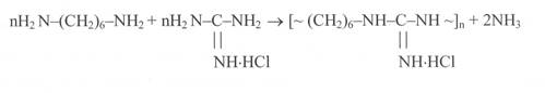 В нашей стране был разработан процесс производства полимерного гуанидинового антисептика - полигексаметиленгуанидингидрохлорида (ПГМГ) («метацид», «полисепт») [18, 10], исходя из гексаметилендиамина и гидрохлорида гуанидина: