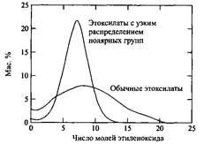 Обычные оксиэтилированные НПАВ характеризуются намного более широким распределением по размеру полярных групп по сравнению с недавно разработанными этоксилатами с узким распределением по полярным группам.