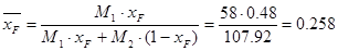 где F – относительный мольный расход питания.