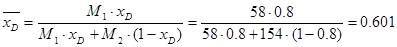 xF, xD, xW- мольная доля легколетучего компонента в исходной смеси, дистилляте и кубовом остатке соответственно.