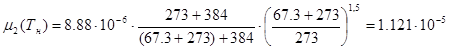 Определим вязкость пара в верхней и нижней части колонны для ацетона (1) и четыреххлористого углерода (2):