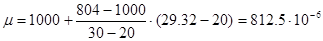 Определим вязкость жидкости для воды при t=29.32 ْC с помощью интерполяции справочных данных: