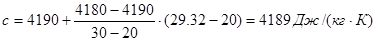 Определим теплоемкость воды t=29.32 ْC с помощью интерполяции справочных данных: