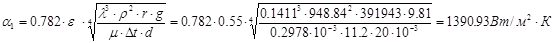 Зная критерий Нуссельта, определим коэффициент теплоотдачи второй стенки по формуле: