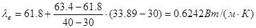 Аналогично определим коэффициент теплопроводности для воды при t=33.89 ْC: