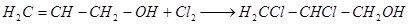 Совершенно иначе, чем этиловый спирт, относится аллиловый спирт к хлору и брому; тогда как обыкновенный спирт дает с ними продукты замещения и окисления (напр. хлораль), аллиловый спирт прямо присоединяет два атома хлора, брома или йода, образуя β-дигалоидгидрины глицерина C3H6Cl2O, C3H6Br2O и C3H6J2O [2]: