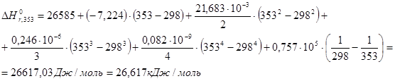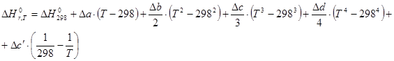 Изменение энтальпии при указанной температуре определяется по уравнению Кирхгоффа:
