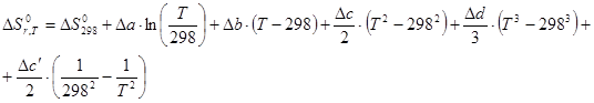 Изменение энтальпии, энтропии и температурных коэффициентов рассчитывается по закону Гесса: