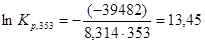 Константа равновесия реакции при заданных температурах определяется по уравнению нормального химического сродства: