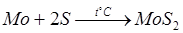 Сера не реагирует с молибденом до температуры 400 – 450°С, при более высокой температуре образуется дисульфид молибдена MoS2: