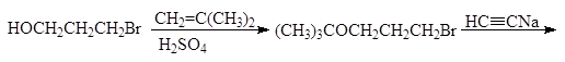 Поэтому гидроксильную группу в 3-бром-1-пропаноле сначала нужно защитить превратив ее в трет-бутоксильную, а затем действовать ацетиленидом натрия: